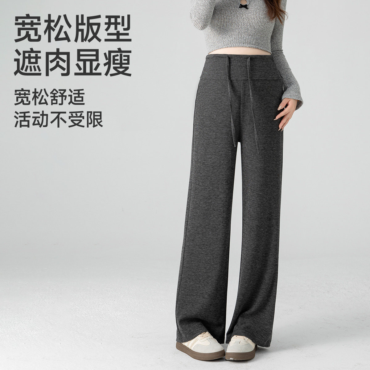 十月结晶孕妇裤冬季小个子垂感阔腿裤松紧腰部妈妈外穿加绒长裤女