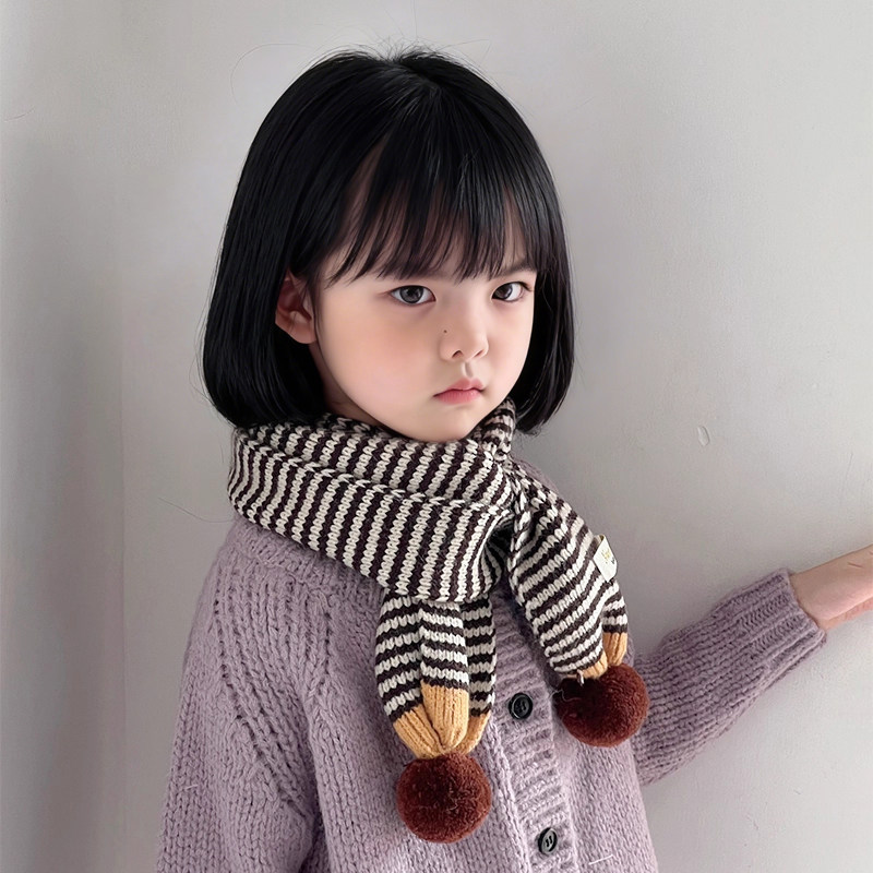 女童围巾2025秋冬新款韩版洋气条纹针织围脖女宝百搭保暖围巾