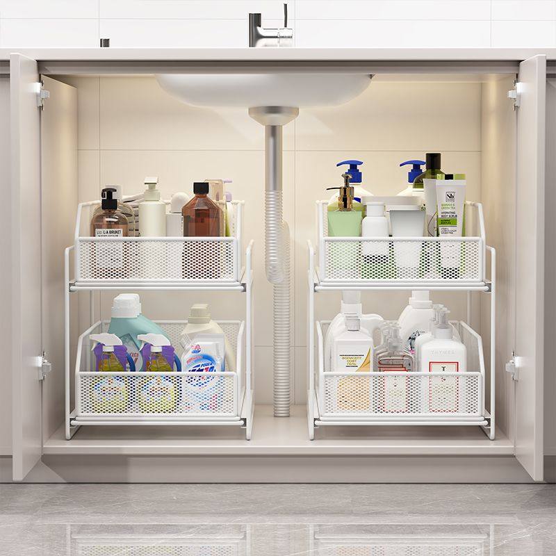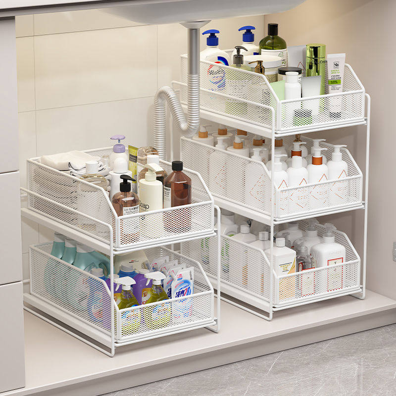 下水槽置物架抽拉式浴室柜下收纳盒多层卫生间洗手台下拉篮分层架