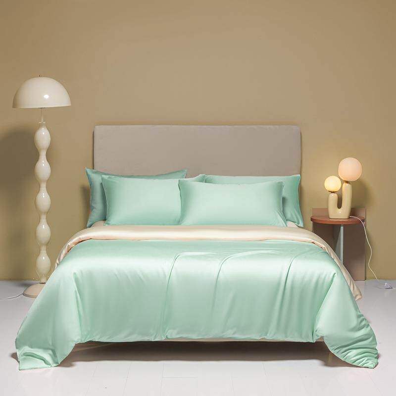 简约60支天丝纯色双拼四件套凉感抗皱裸睡被套床单套件