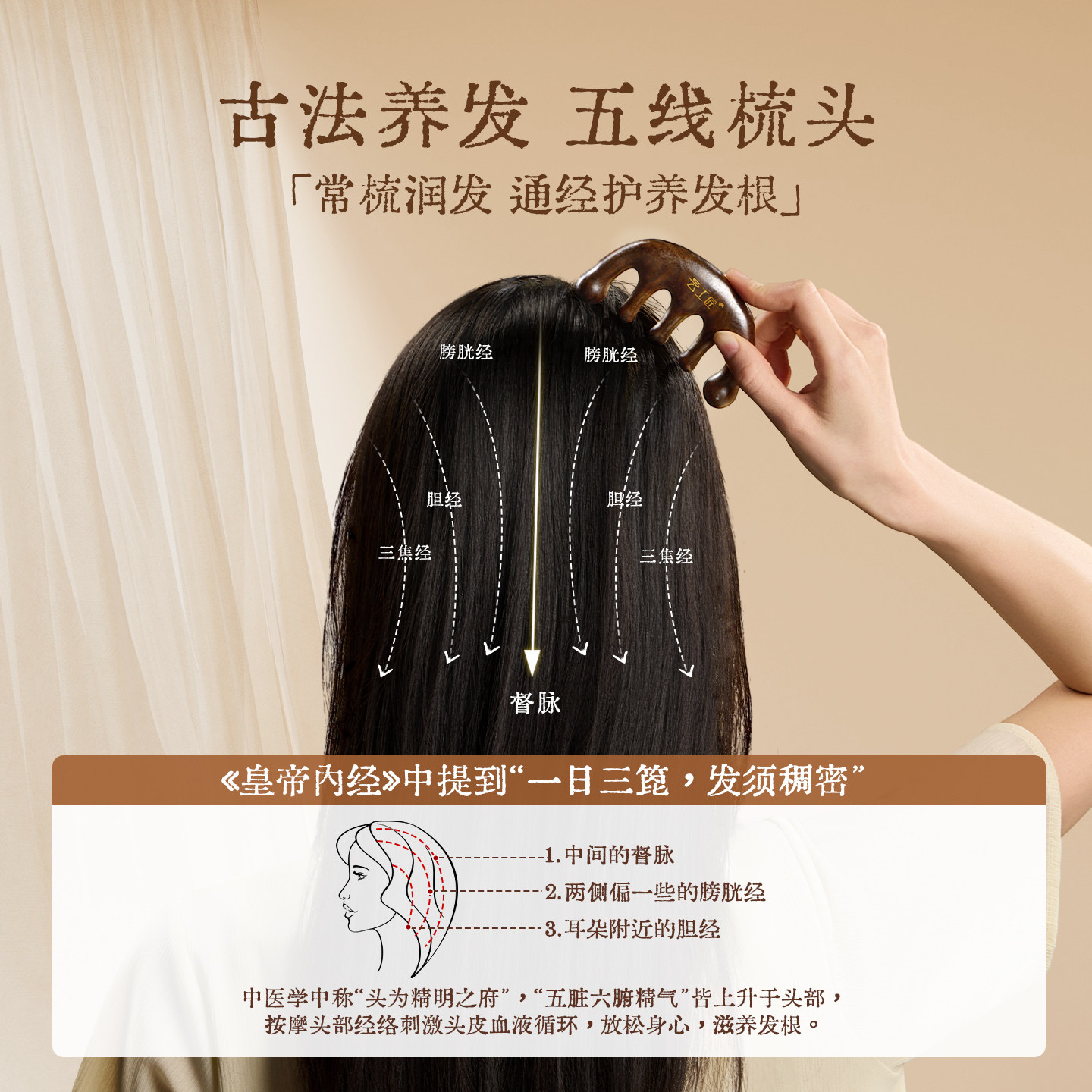 天然黑檀木按摩梳子头皮经络梳刮痧头部五爪防脱发疏通器养生结婚