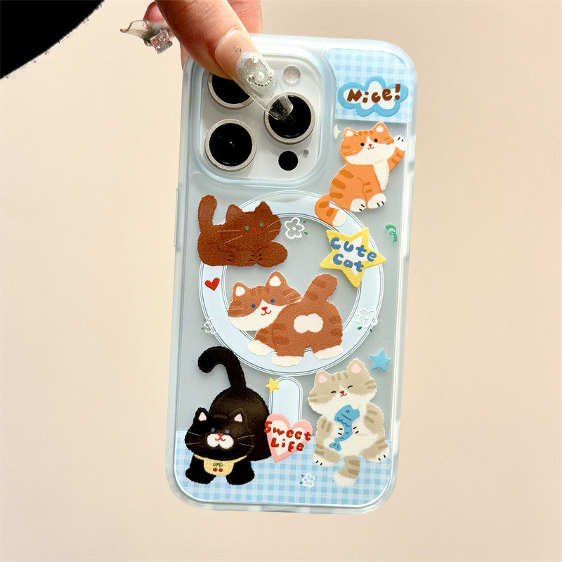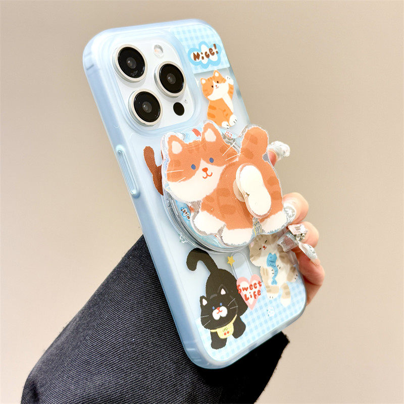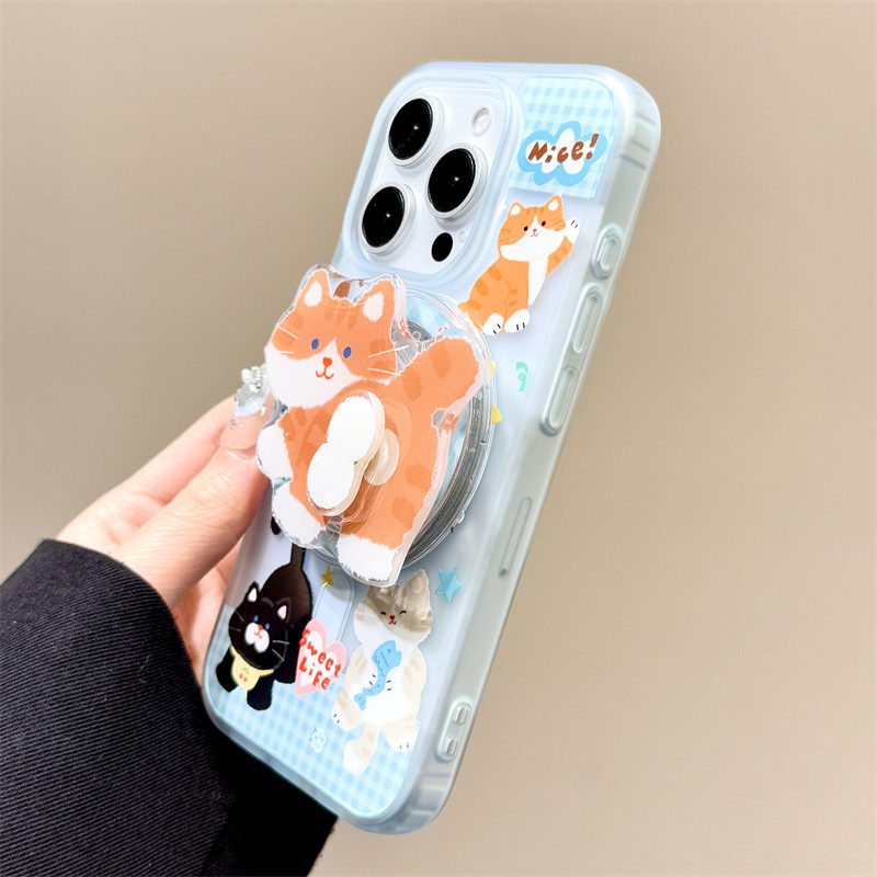 日韩ins可爱油画猫咪旋转磁吸支架适用于iphone17promax苹果14手机壳15新款16pro女17磨砂13pm硅胶创意防摔套