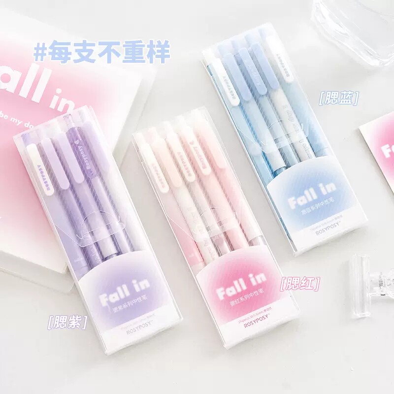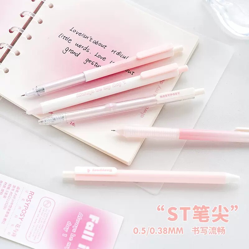 腮红冰透感!RosyPosy原创按动中性笔st笔头文具黑笔刷题日系高颜值ins女生女孩可爱水笔学生专用考试速干0.5