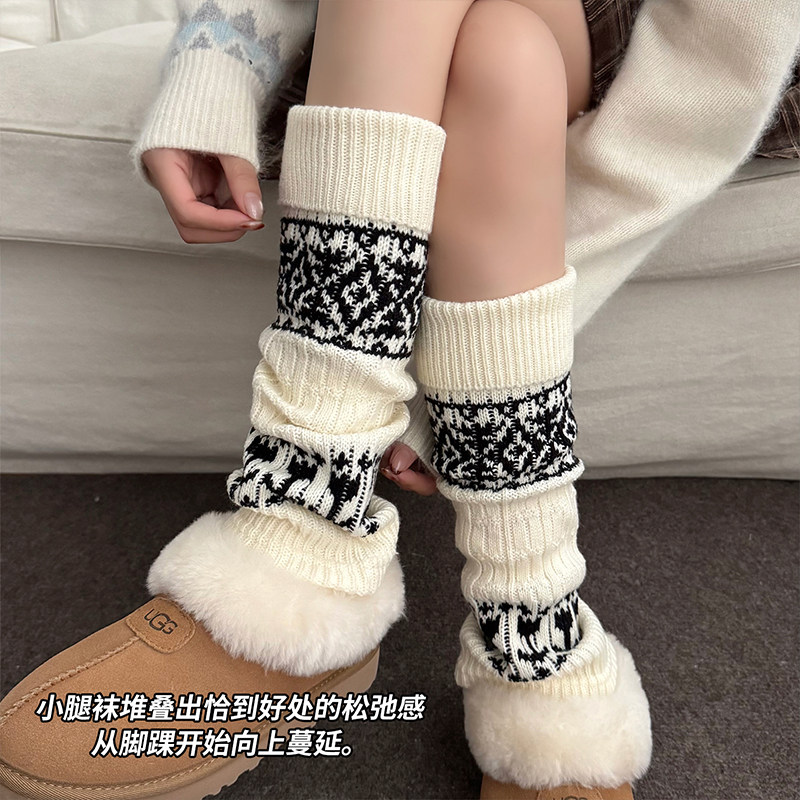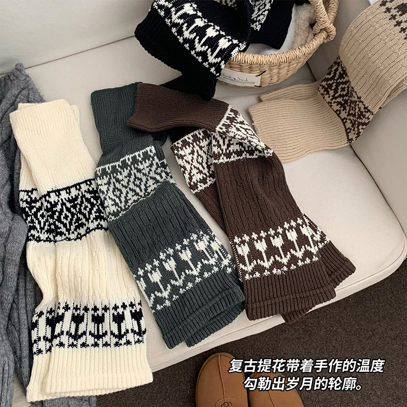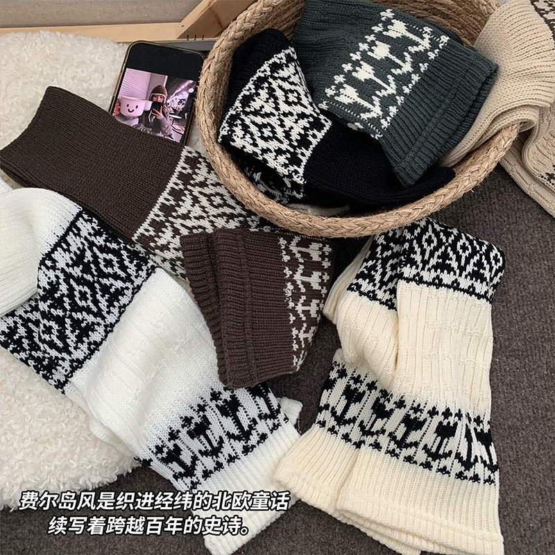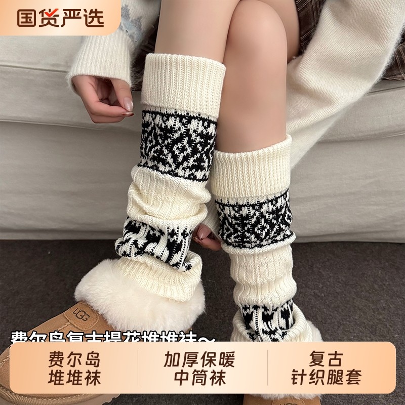 费尔岛堆堆袜子女秋冬针织袜套加厚保暖中筒袜复古灰色女士长筒袜