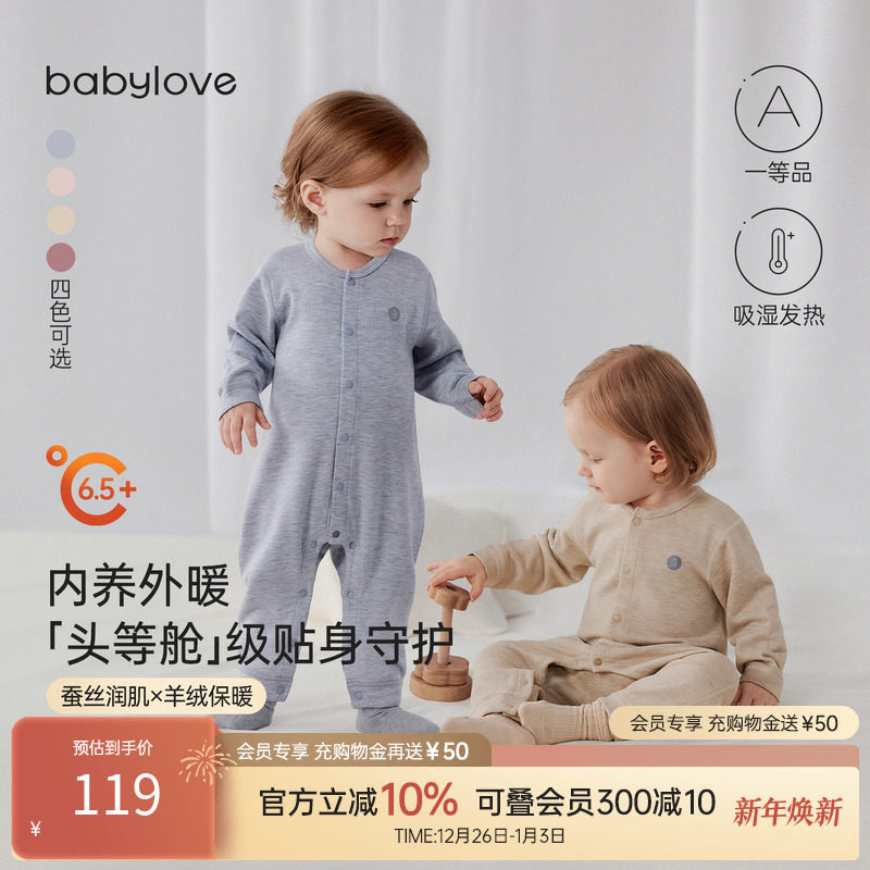 babylove【头等舱】婴儿连体衣秋冬蚕丝羊绒宝宝保暖睡衣打底衣