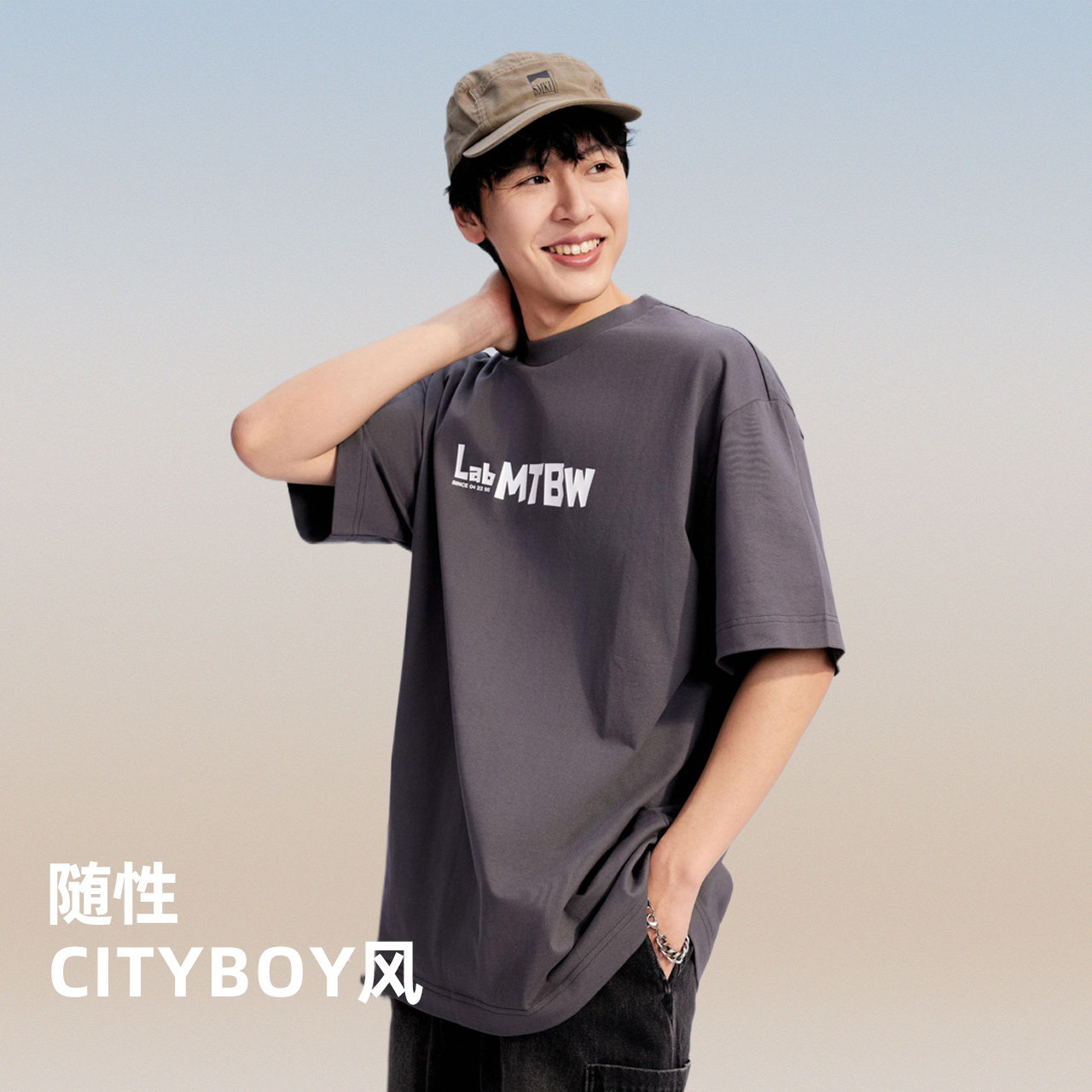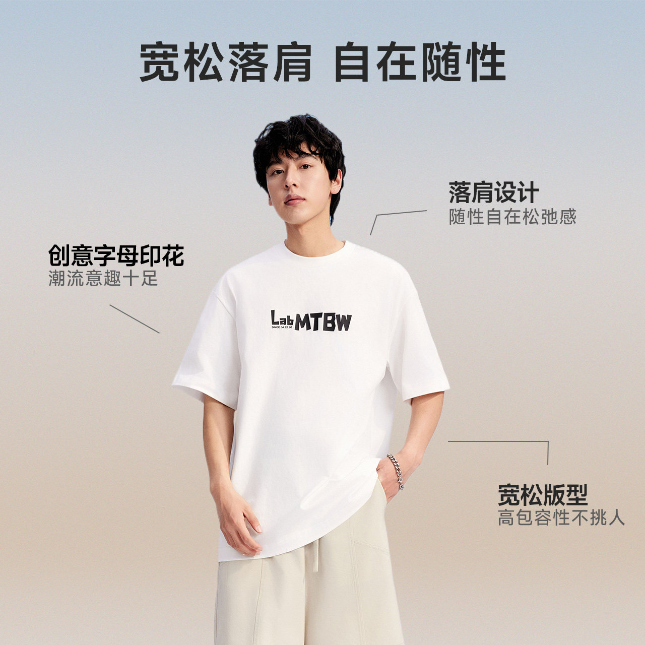 美特斯邦威重磅短袖T恤男2025夏季新款休闲舒适潮流印花圆领上衣t