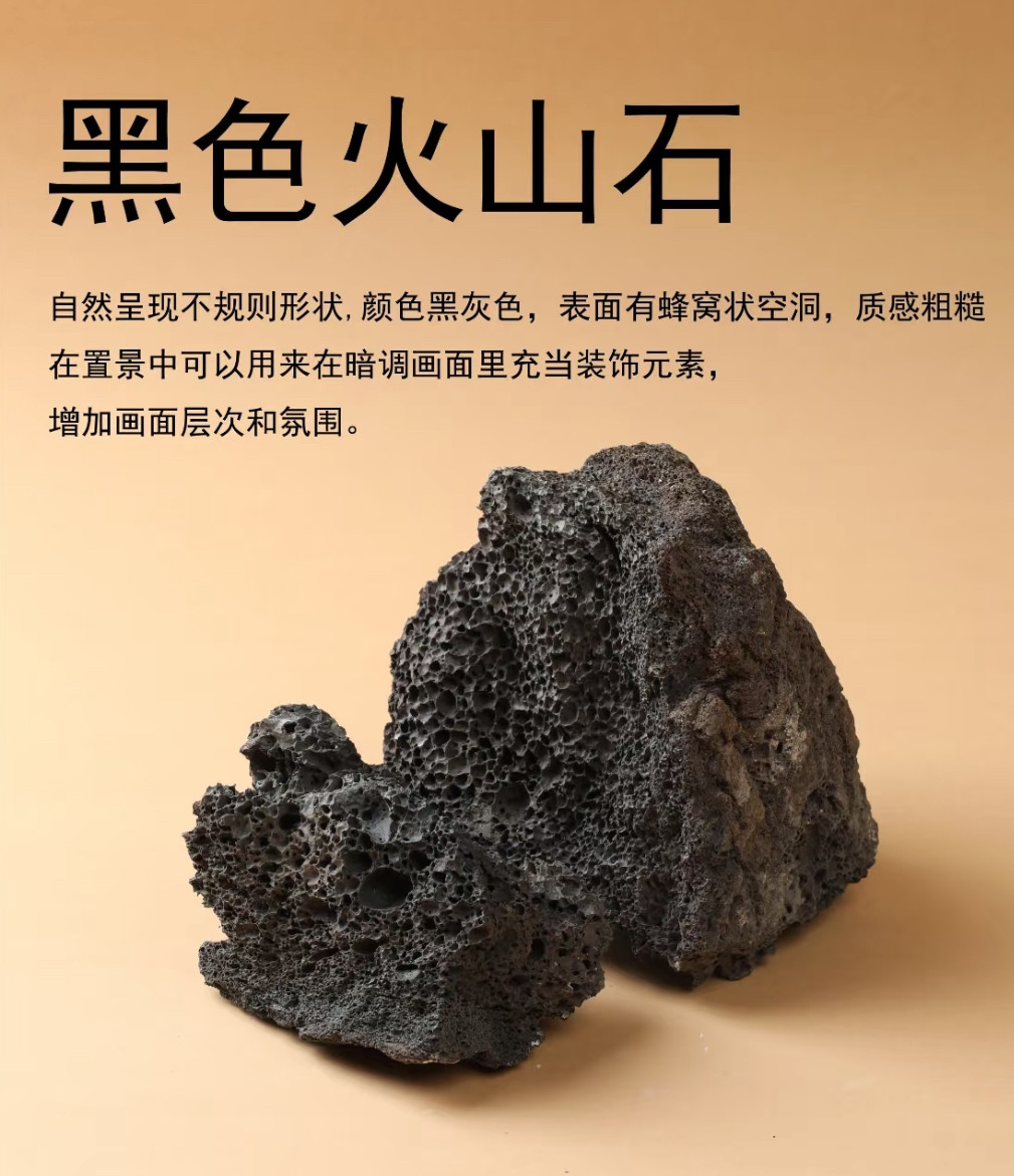 黑岩石纹理拍照背景道具饰品化妆品静物摄影创意鱼缸造景装饰假山