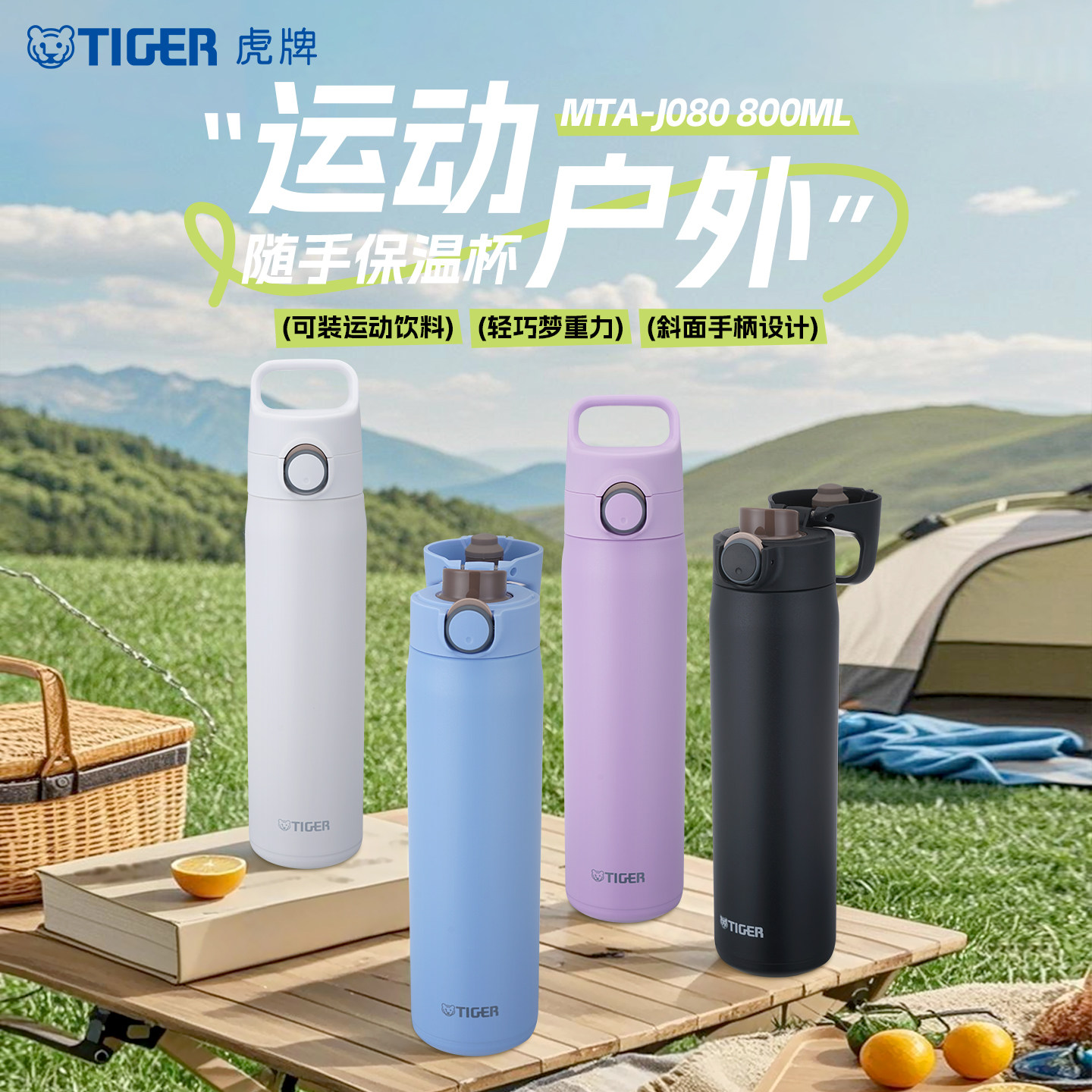 tiger虎牌户外运动大容量保温杯便携简约高颜值保冷水壶800ml新品