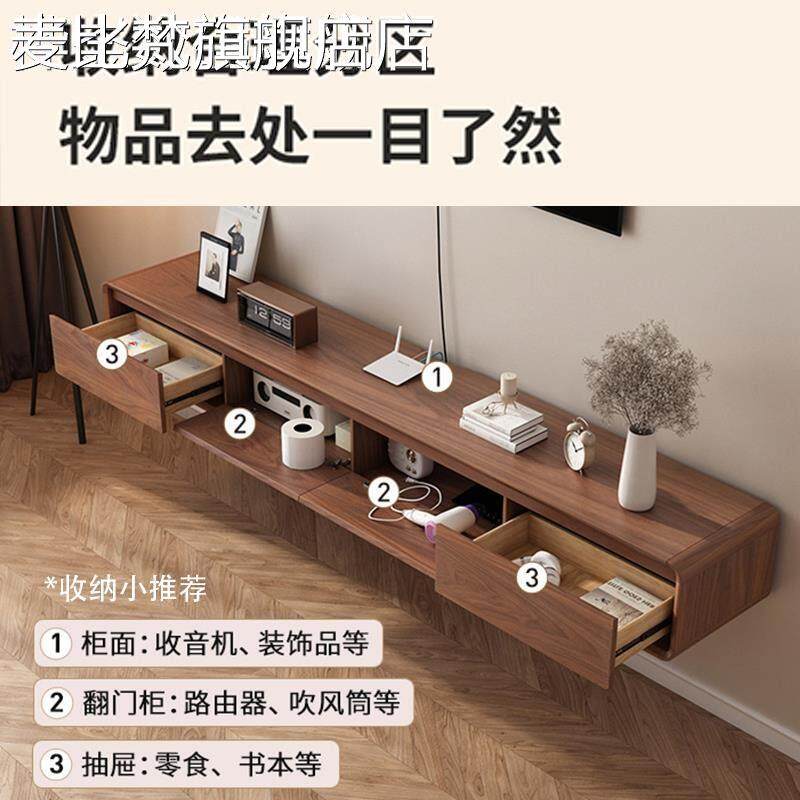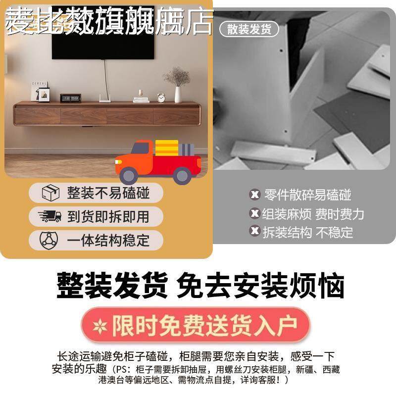 麦比梵实木中古风悬浮电视柜客厅家用2025新款复古收纳储物柜一体小户型床笠拉车
