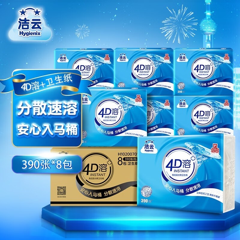 洁云抽纸4D溶方包卫生纸厕所专用纸巾390张大包厕纸草纸刀切纸抽