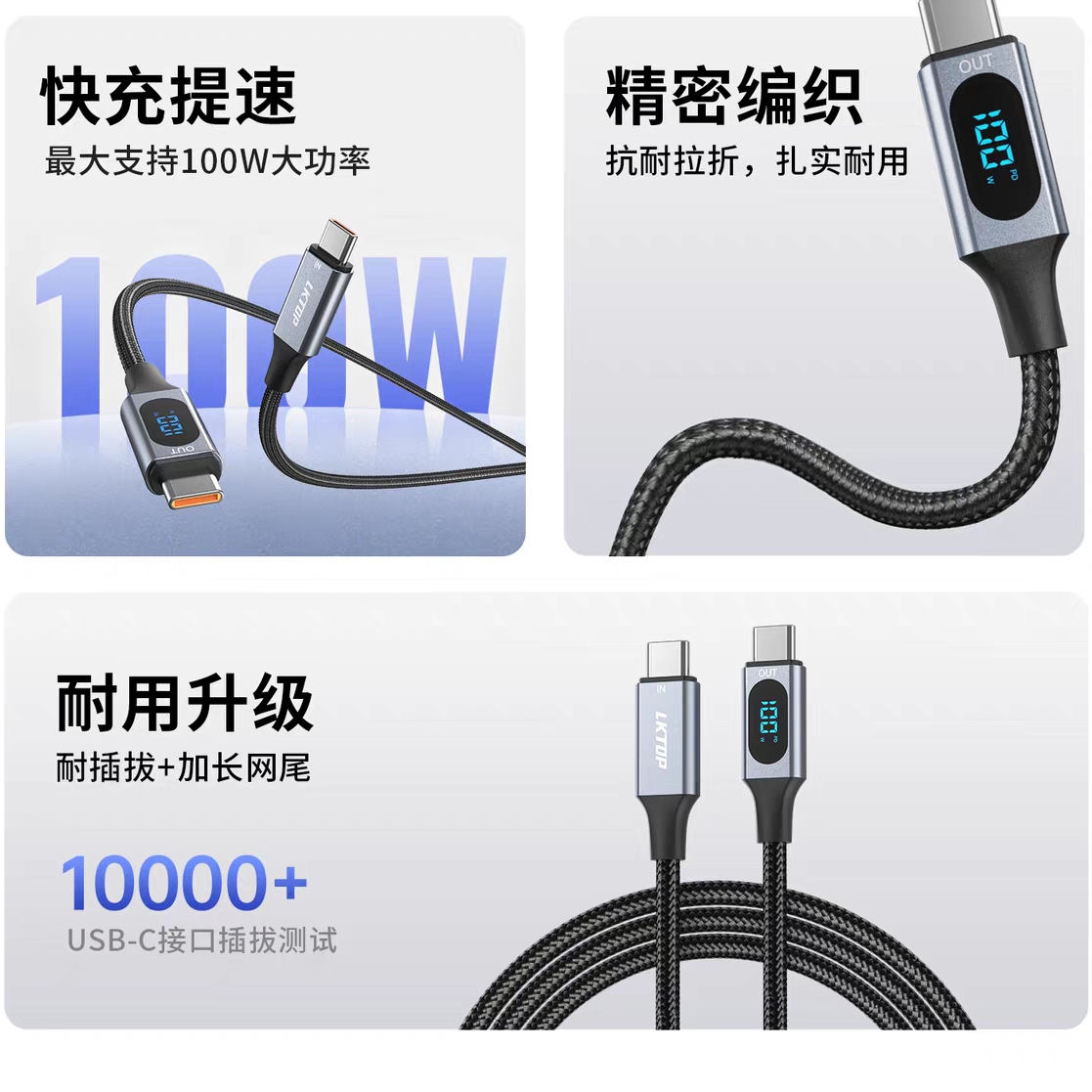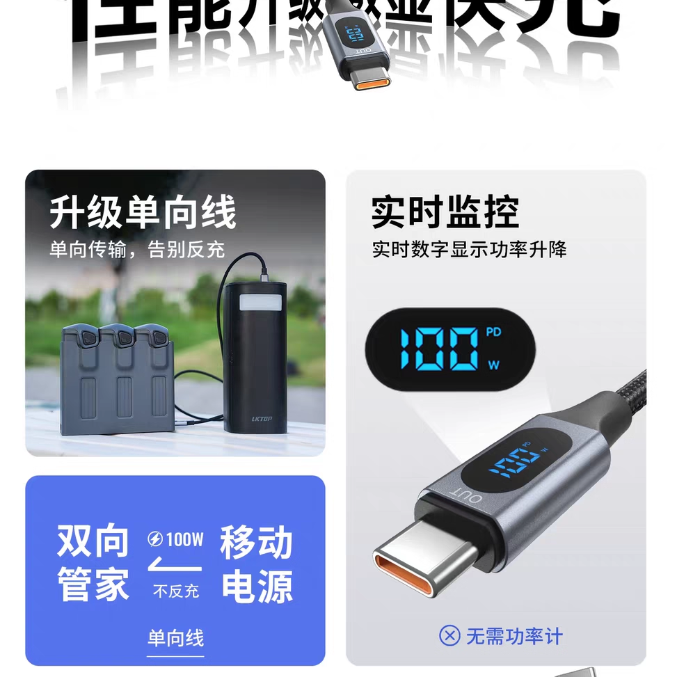 单向充电 LKTOP立可拓100W数显Type-C数据线适用大疆MAVIC 4PRO/Air3系列/AVATA2充电管家