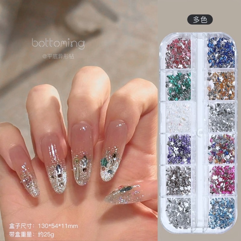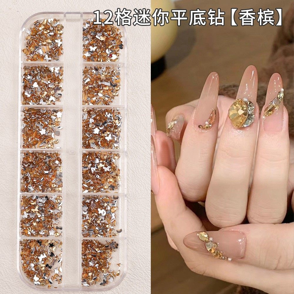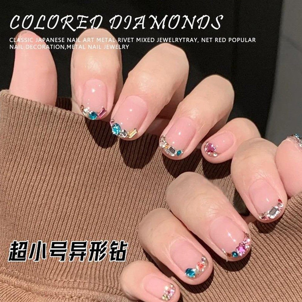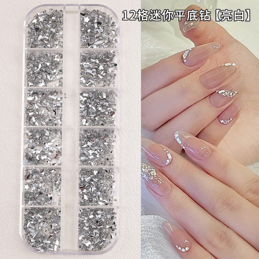 美甲迷你平底异形钻美甲饰品爆闪红穿戴甲配饰珍珠钢珠混装白色