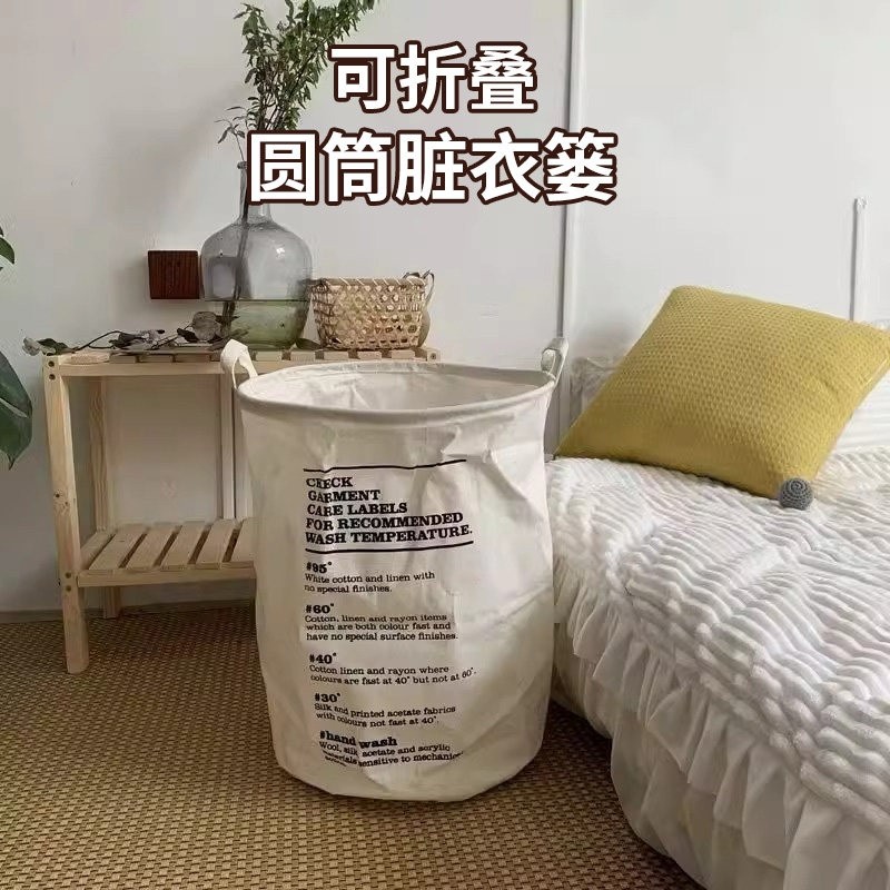 北欧简约风英文脏衣篮防水棉麻布制浙江制洗衣桶学生适用