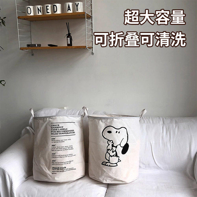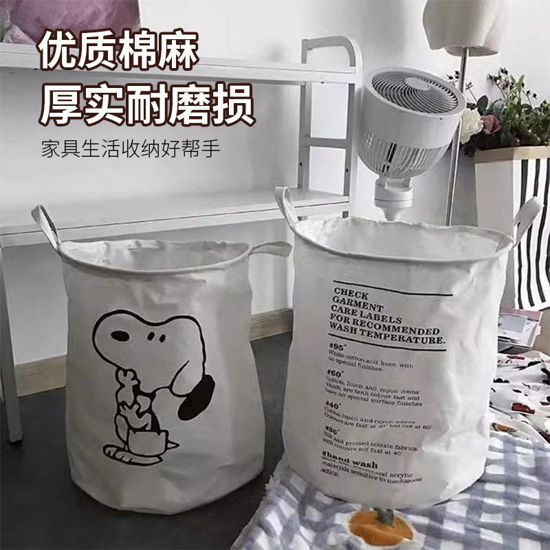 卡通ins简约可爱极简风英文家居脏衣篮收纳桶防水棉麻帆布框学生