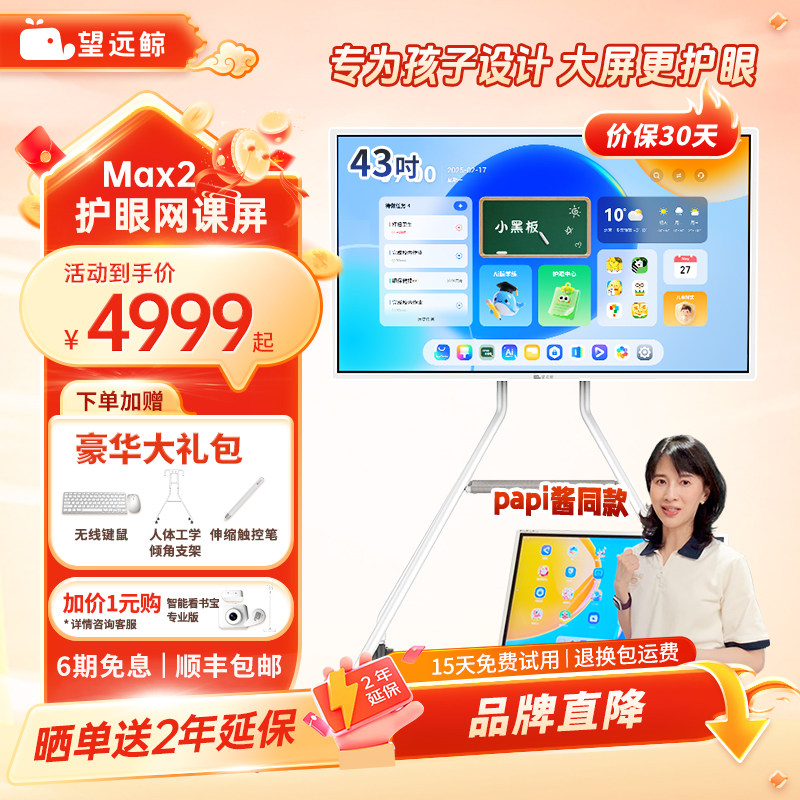 【papi酱同款 老爸评测】望远鲸43英寸护眼网课屏Max2 学生专用平板电脑学习机闺蜜机移动电视亲子屏4K显示器