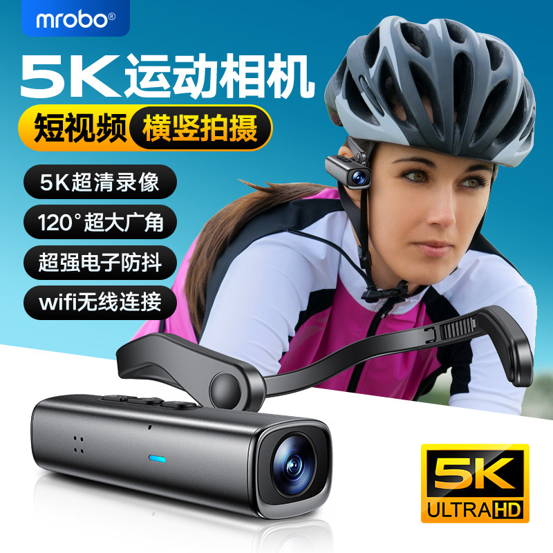 头戴式超清摄像机5K防抖运动全景相机骑行耳挂头盔记录仪第一视角