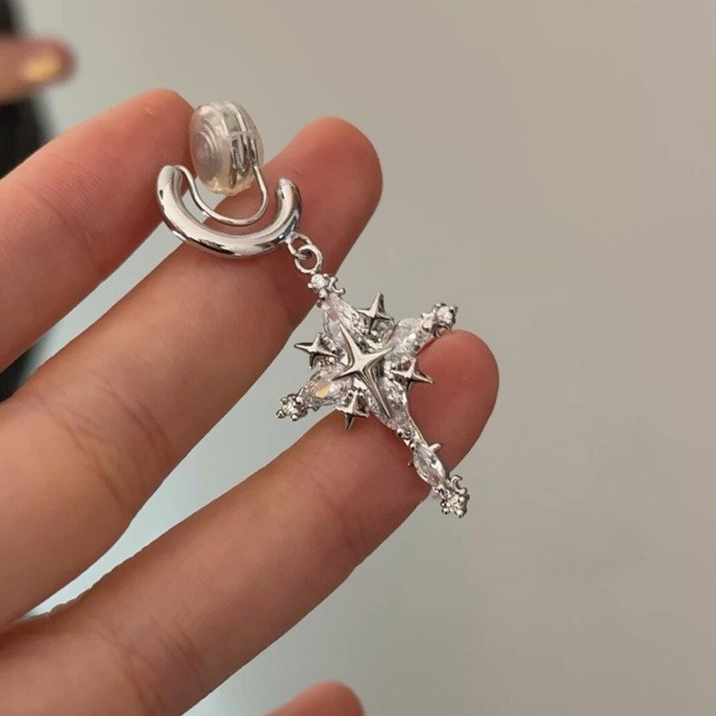 轻奢微镶锆石十字架吊坠耳环时尚个性欧美气质简约星芒无耳洞耳夹