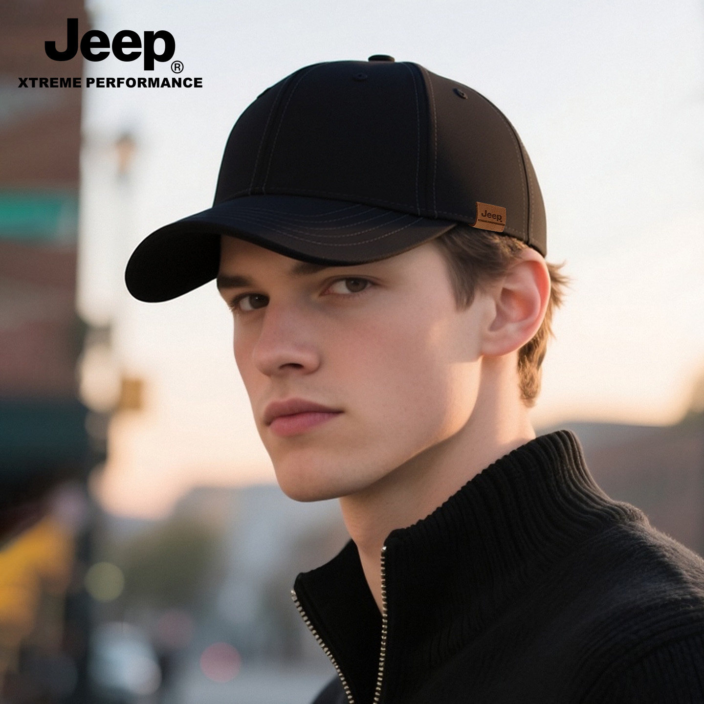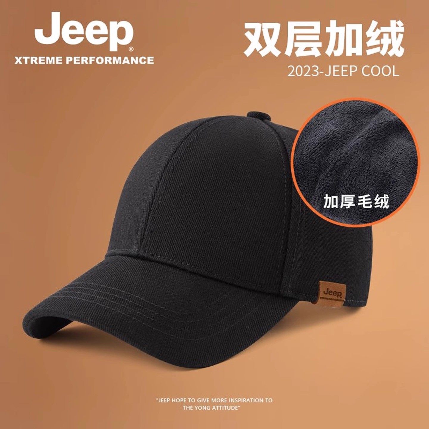jeep吉普男士秋冬加绒棒球帽保暖纯色硬顶帽子冬天防风鸭舌帽男款