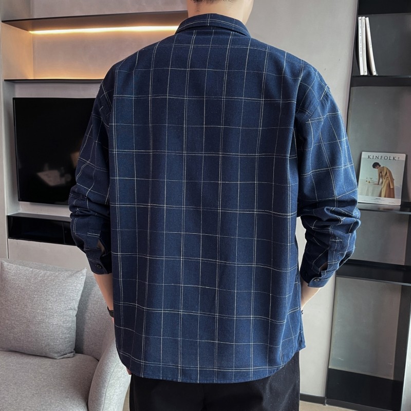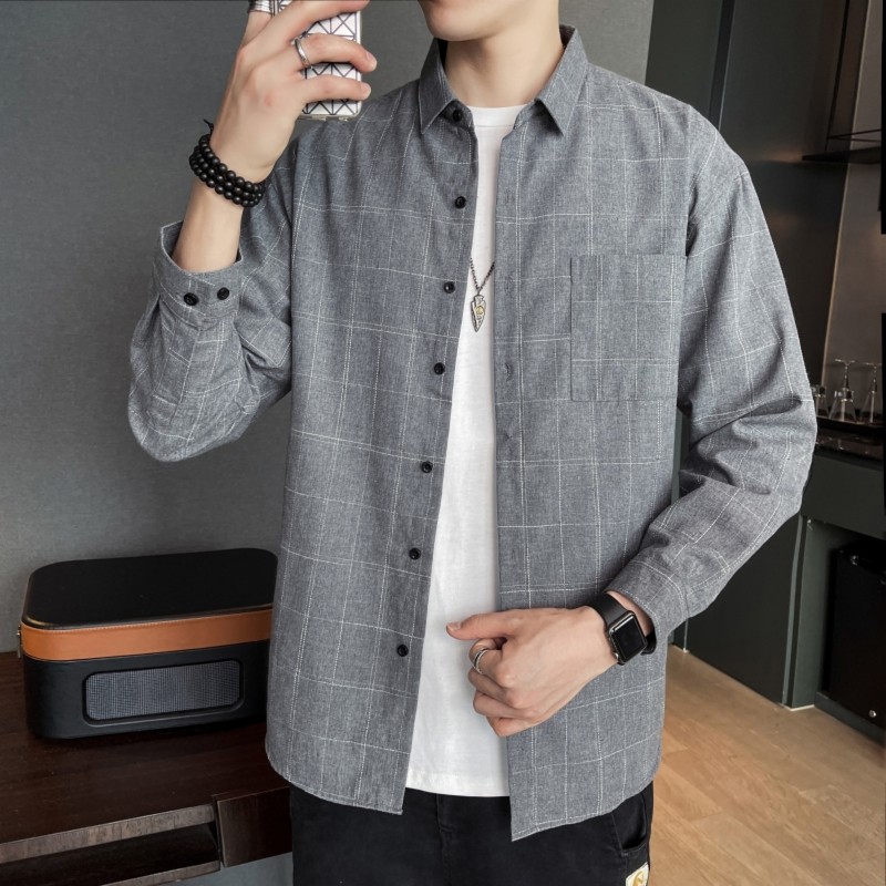 港风潮流秋季格子衬衫男休闲春秋长袖外套青少年男装上衣潮牌衬衣