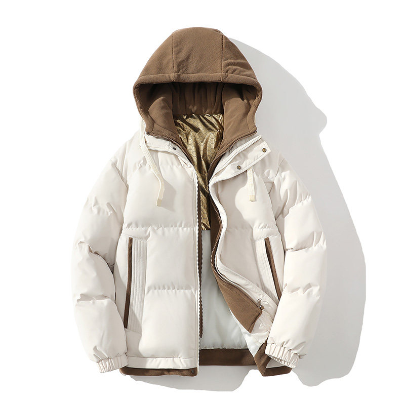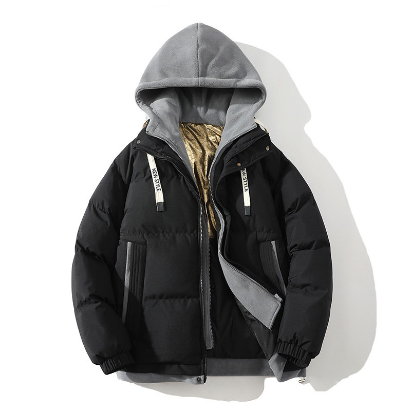 OVJF2025年新款秋冬男生连帽假两件棉服户外加厚防风保暖运动棉衣