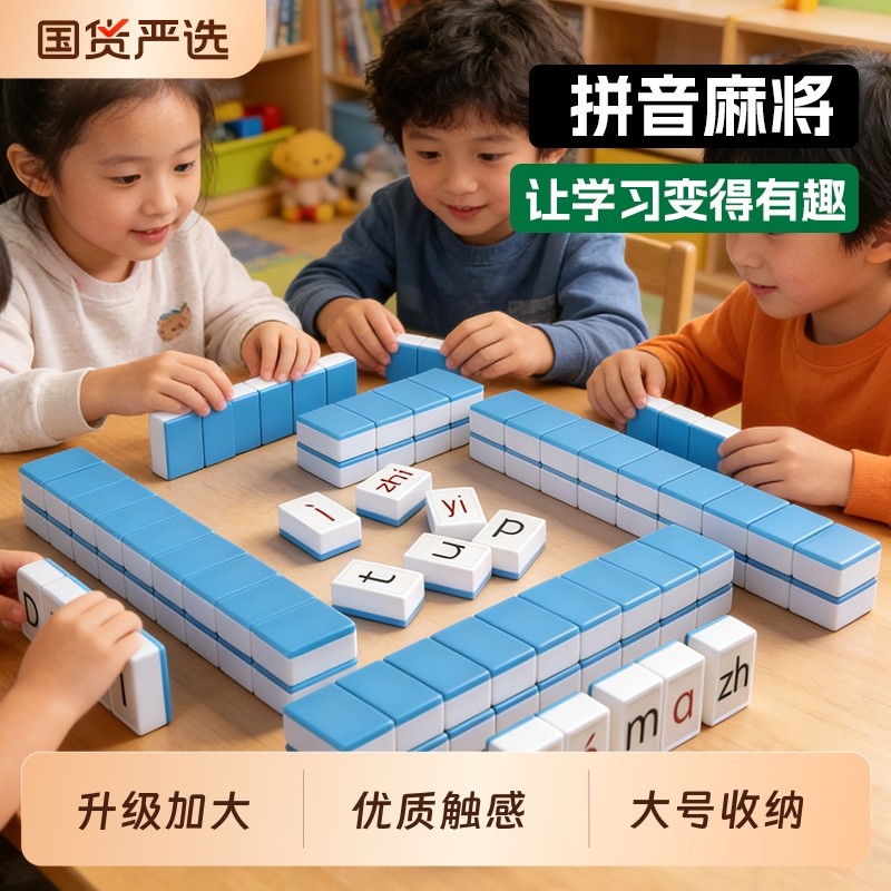 汉语拼音麻将字母儿童趣味拼读幼儿园小学一年级益智玩具学习桌游