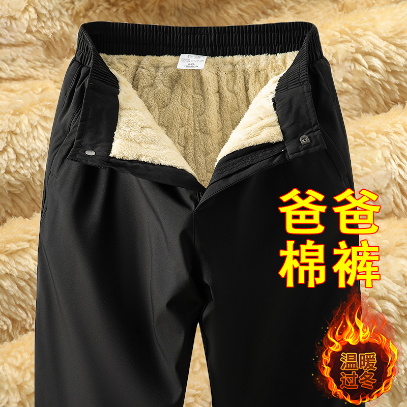 爸爸加绒裤子男秋冬季新款中老年男士老人冬装加厚棉裤男款防水