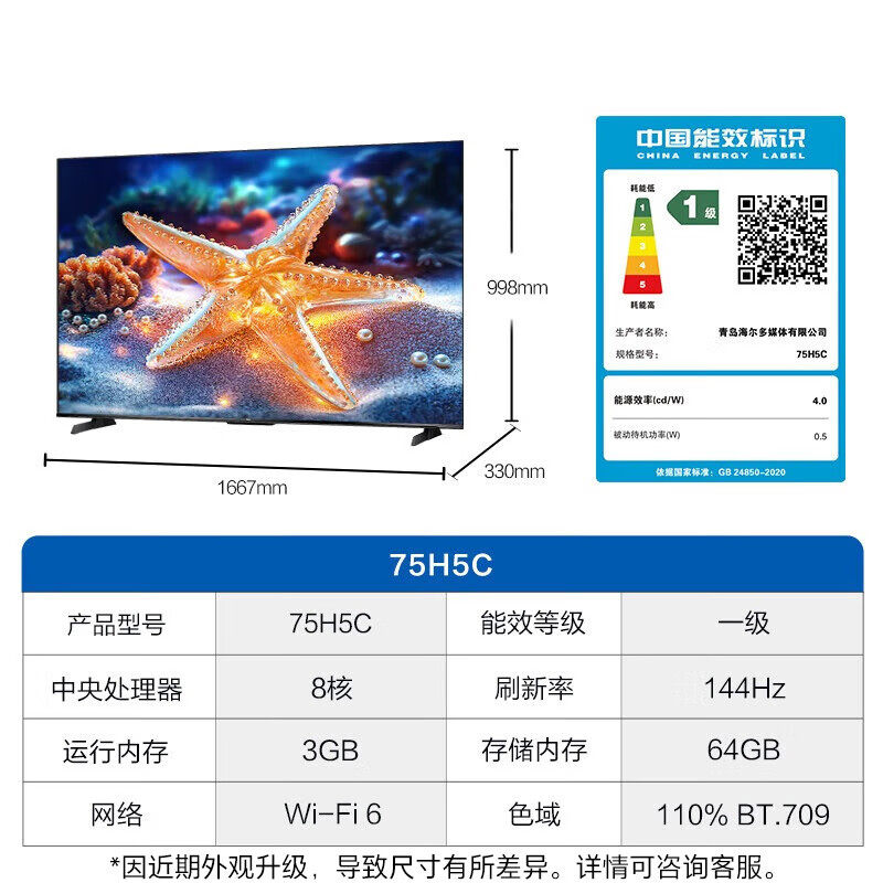 国家补贴海尔小红花平板液晶75英寸家用超薄MiniLED护眼电视机H5C
