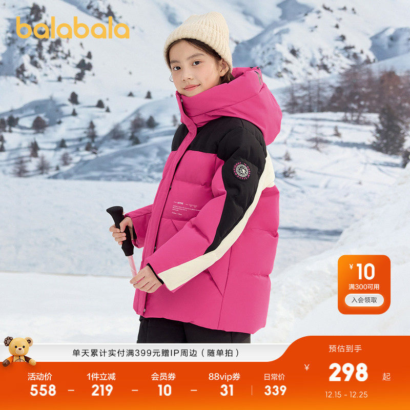 巴拉巴拉童装儿童羽绒服女童冬季中长款大童保暖上衣舒适户外拼色