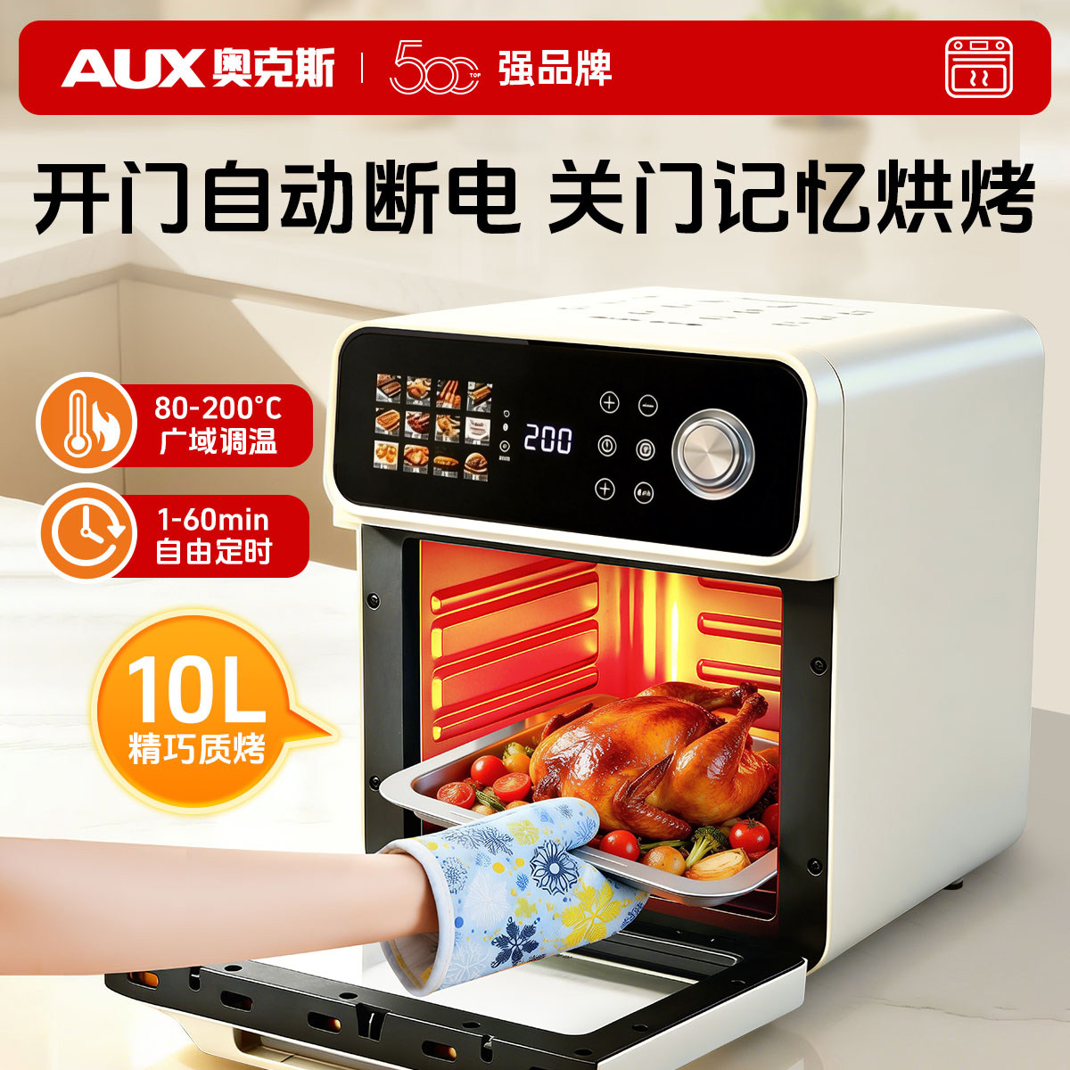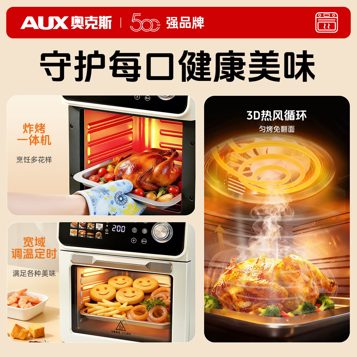 奥克斯电烤箱家用2025新款空气炸锅智能多功能烘焙蒸烤微波炉一体