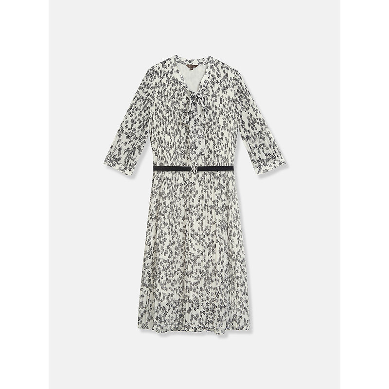 【周末花园】YINER音儿专选2025夏季新款碎花蝴蝶结领皱褶连衣裙