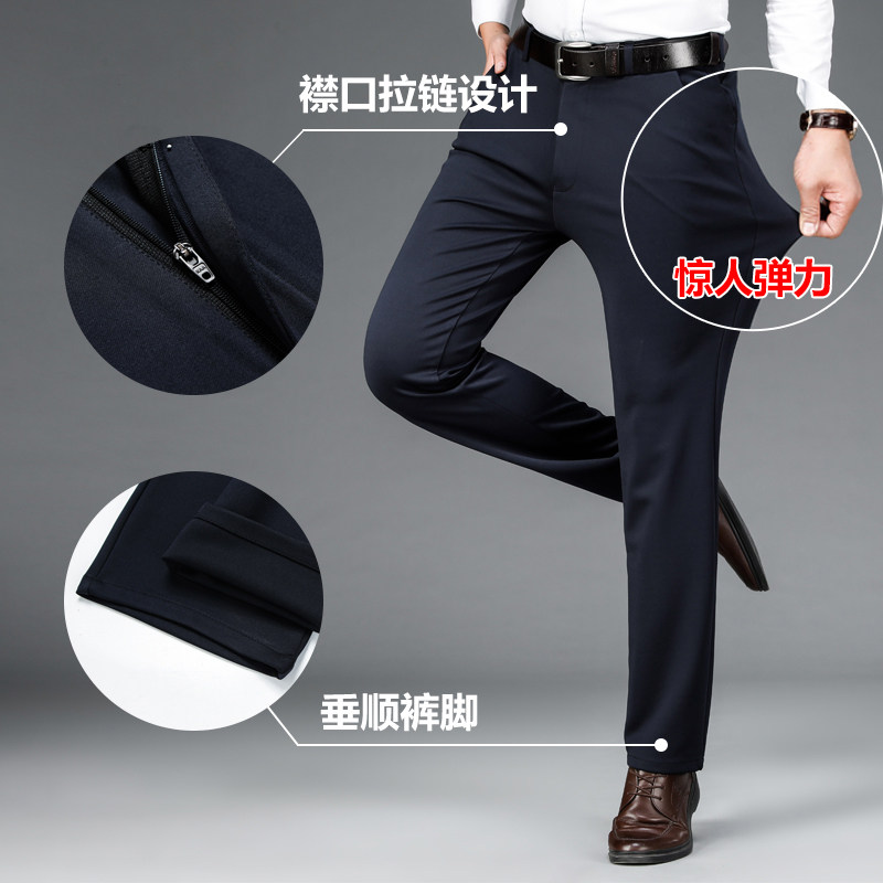 商务西装裤中年男裤子四季长裤子高档垂感直筒弹力休闲裤薄款厚款