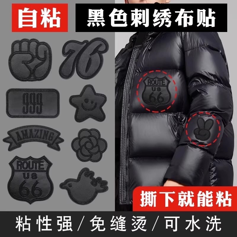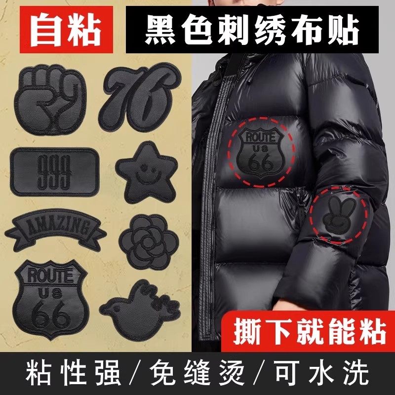 自粘羽绒服补丁贴高级衣服免缝布贴裤子破洞修复无痕刺绣修补贴片