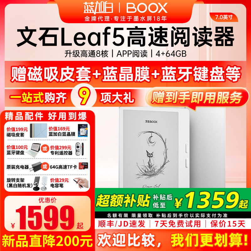 【新品送礼包】文石 BOOX Leaf5 电子阅读器7英寸智能墨水屏电子书阅览器护眼屏听读书水墨屏电纸书