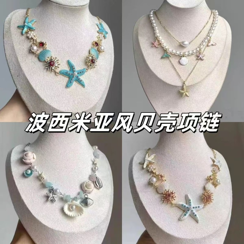波西米亚风贝壳海星项链女轻奢高级感多层锁骨链海边度假配饰