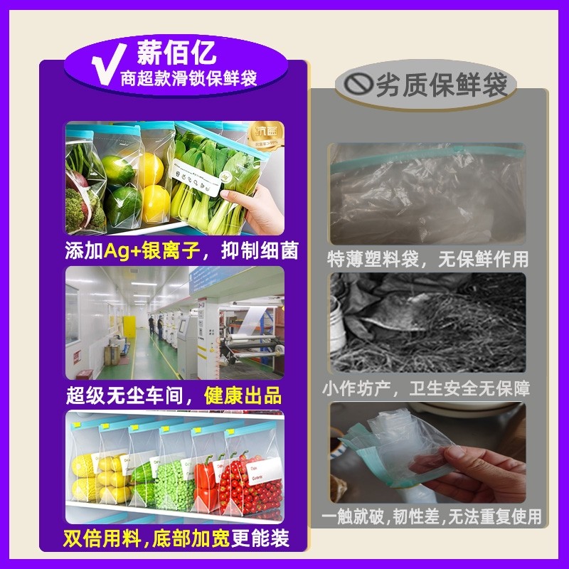 保鲜袋食品级家用密封袋冰箱专用自封袋大号收纳袋子带封口加厚款