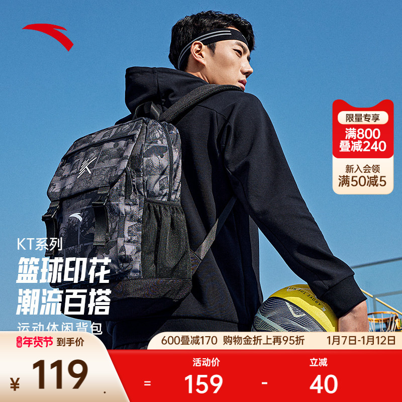 安踏双肩包男黑色健身休闲大容量户外轻量篮球背包旅游运动登山包