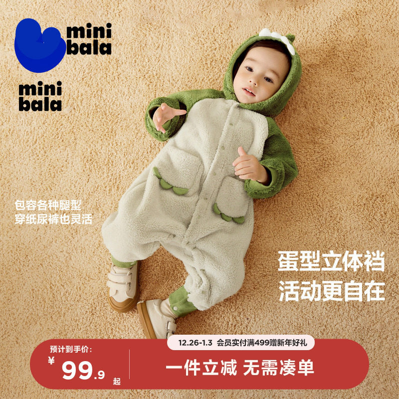 迷你巴拉巴拉婴儿连体衣外出加厚珊瑚绒爬服毛绒衣服加绒保暖萌趣