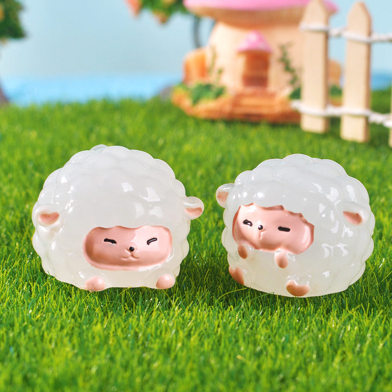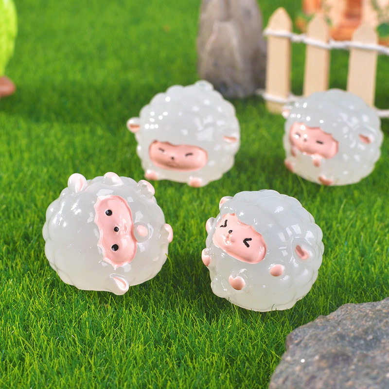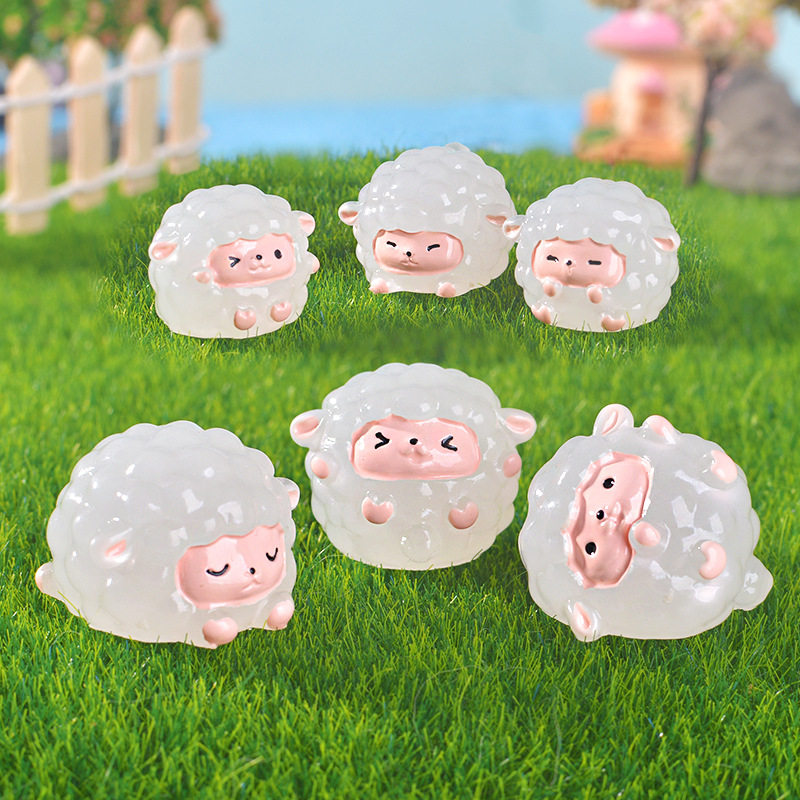 跨境微景观夜光小绵羊家具客厅桌面摆件创意装饰树脂工艺品小摆件