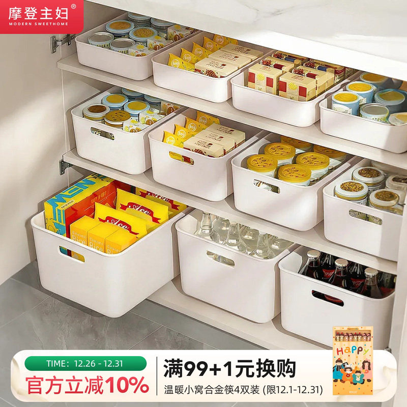 摩登主妇桌面收纳盒厨房整理盒子带盖零食抽屉长方形小杂物储物盒