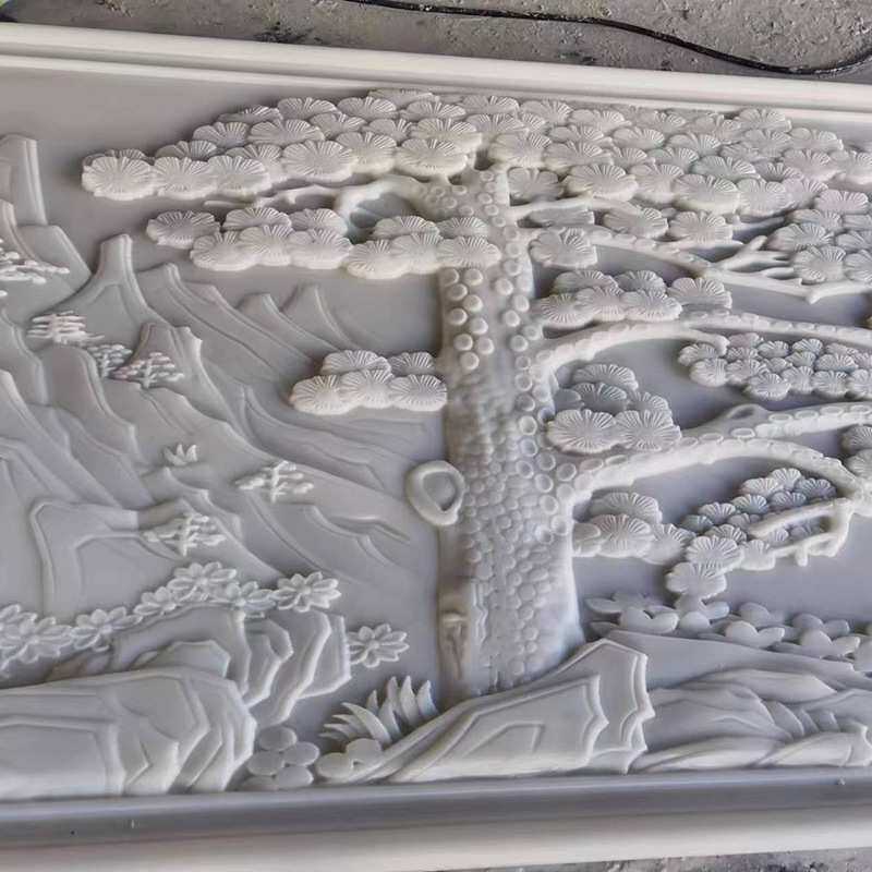 新中式石雕浮雕壁画仿古白玉浮雕庭院别墅装饰地砖墙平面白色浮雕