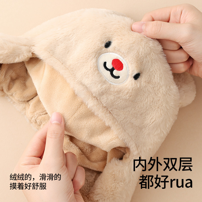 尼多熊儿童帽子围巾一体冬季防风帽宝宝毛绒护耳帽女童加厚保暖帽