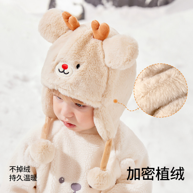 贝肽斯儿童帽子婴儿秋冬季加绒加厚宝宝护耳帽男女童防风保暖洋气