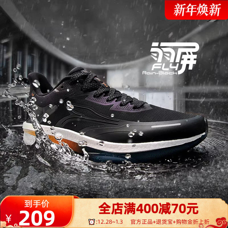 361雨屏8.0跑步鞋男鞋新款防泼水运动鞋雨天通勤黑色鞋子减震跑鞋