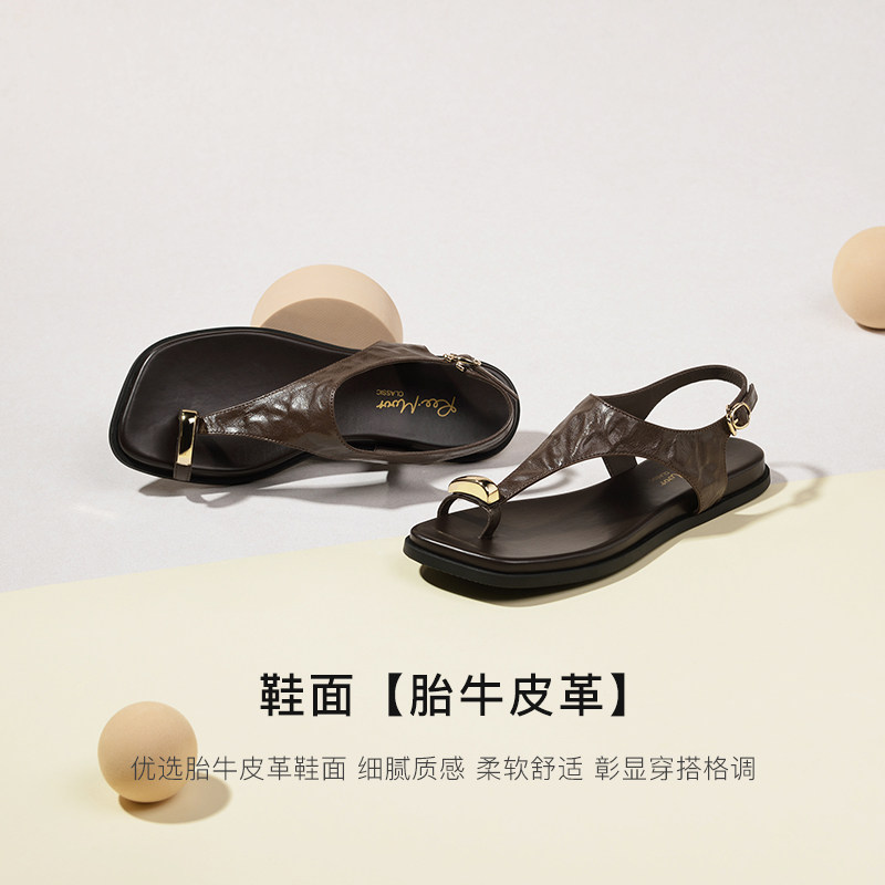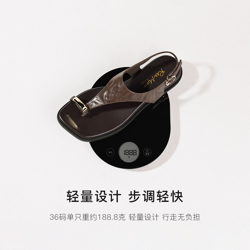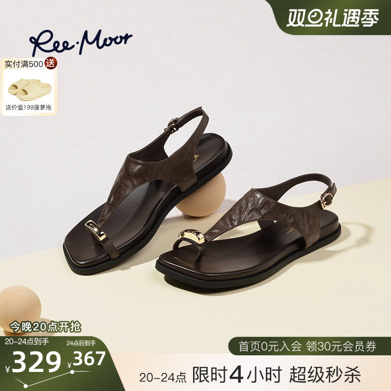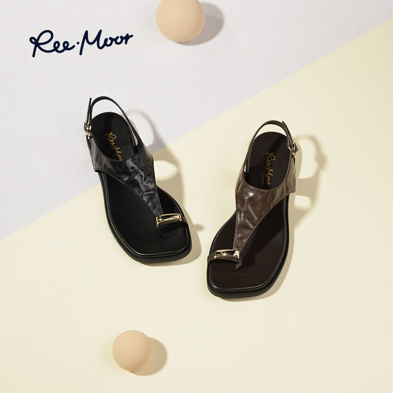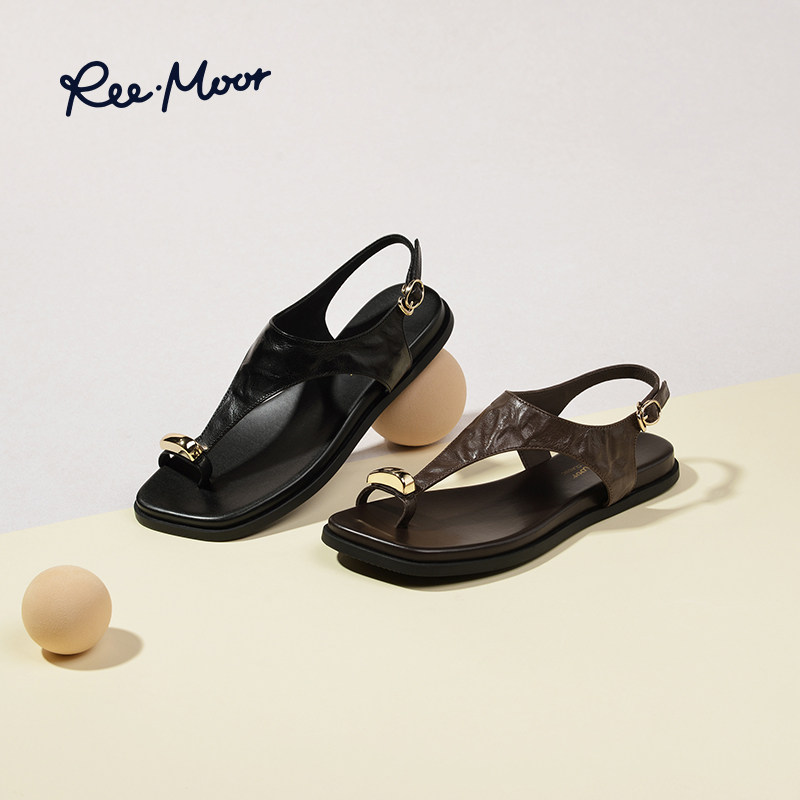 REEMOOR睿慕2025夏季新款休闲厚底平底金属套趾罗马凉鞋人字拖女