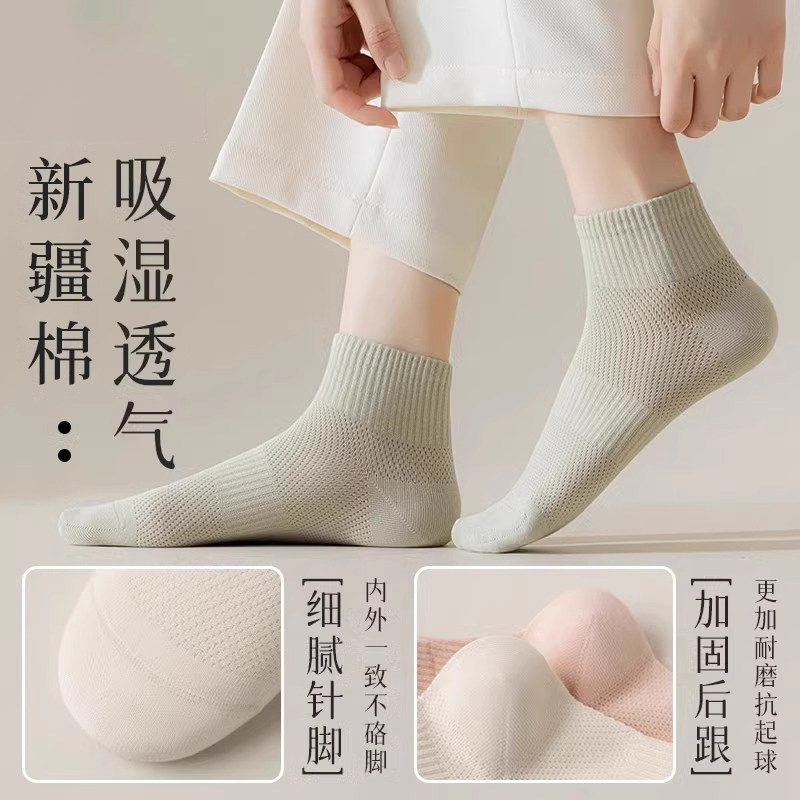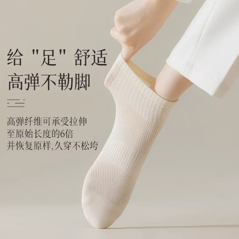 诸暨袜子女款短袜夏季薄款网眼透气中筒袜夏天女士黑白色无骨棉袜