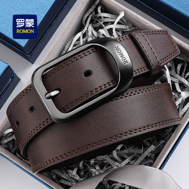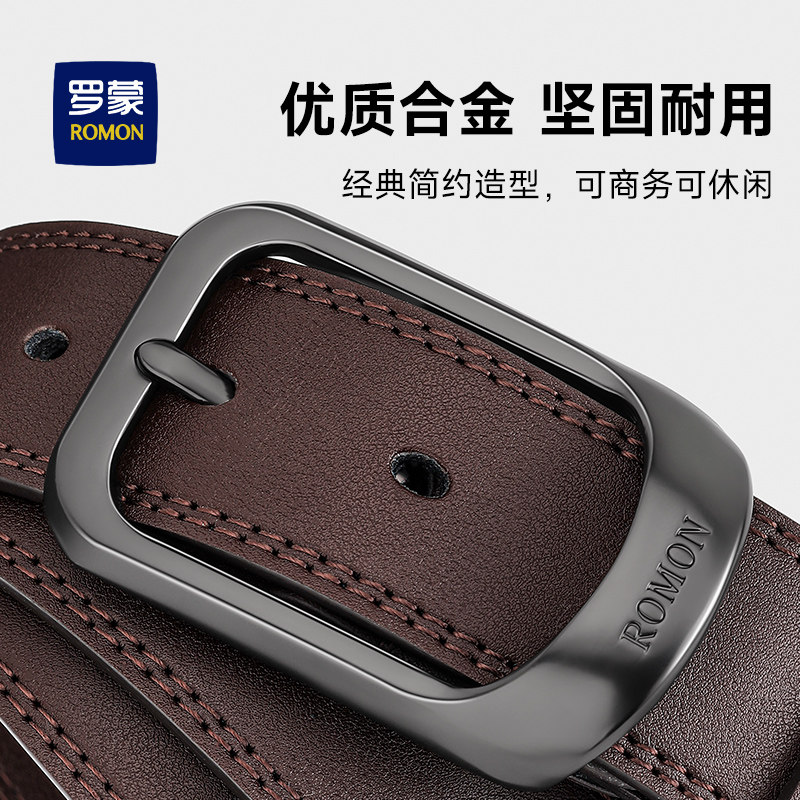 罗蒙皮带男款真皮针扣男士腰带2025新款纯正品牛皮年轻人休闲裤带