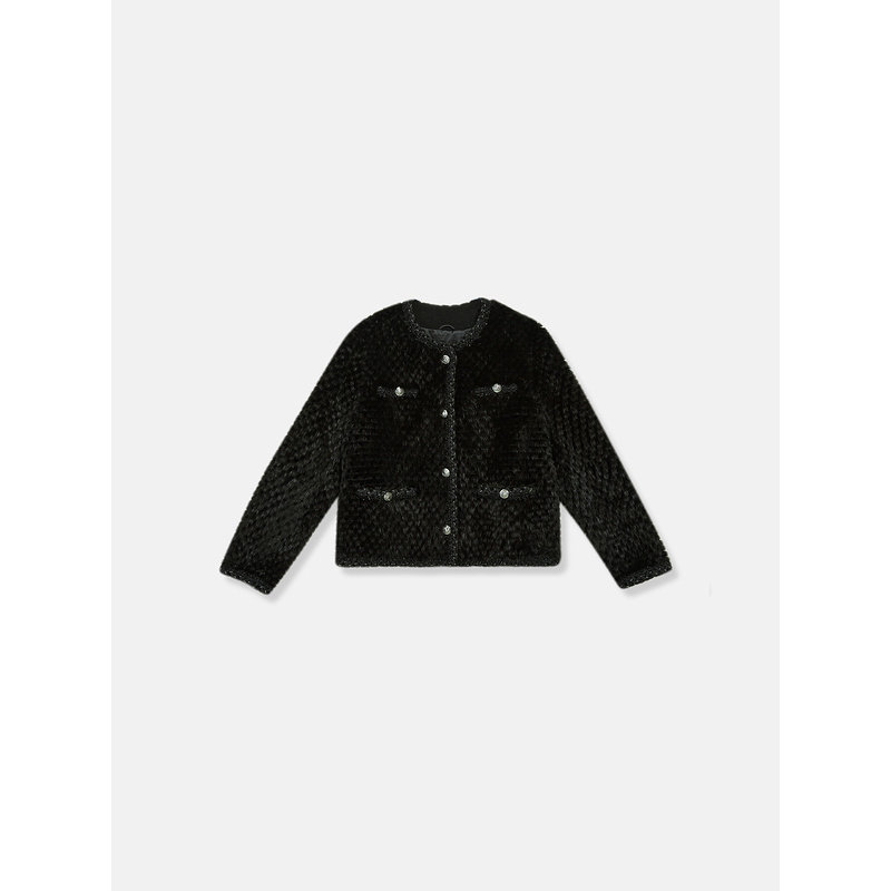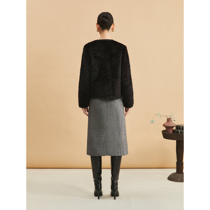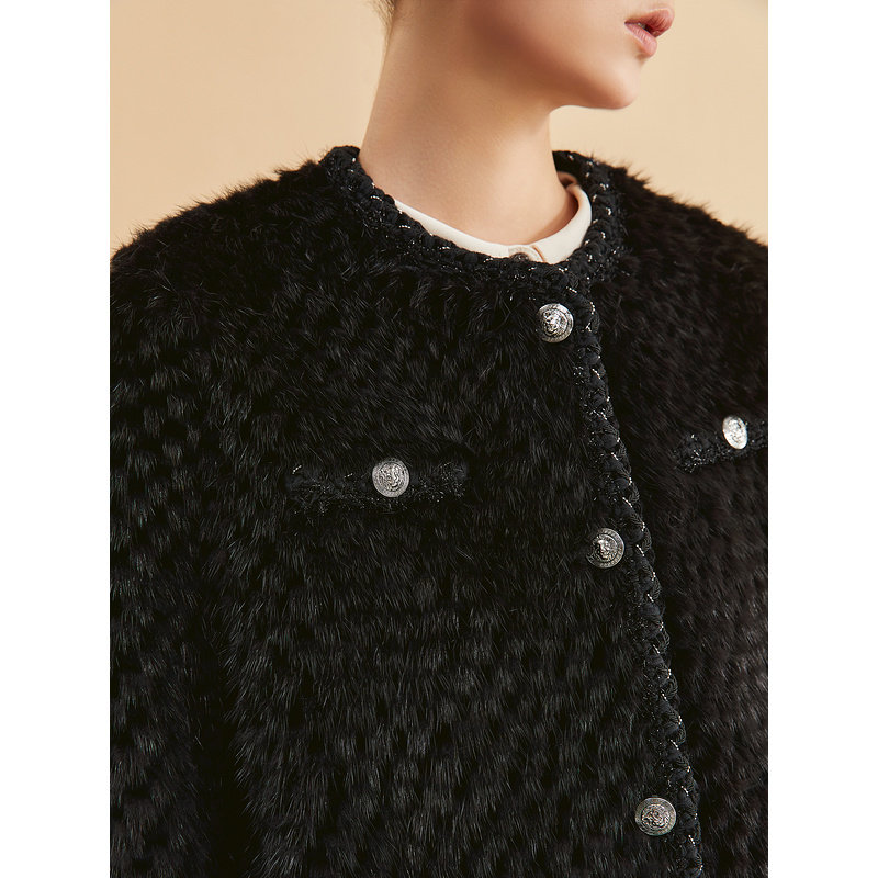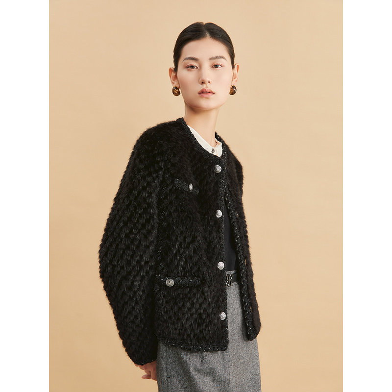 YINER音儿专选冬季小香风短款兔毛拼水貂毛皮草外套