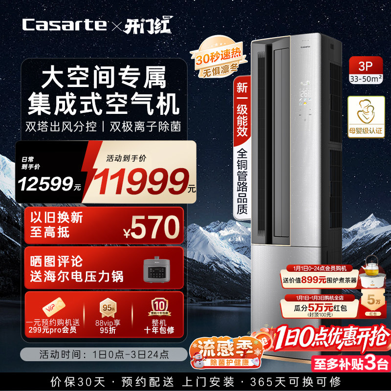政府补贴卡萨帝空调柜机变频家用客厅除湿冷暖软风新一级立式3匹