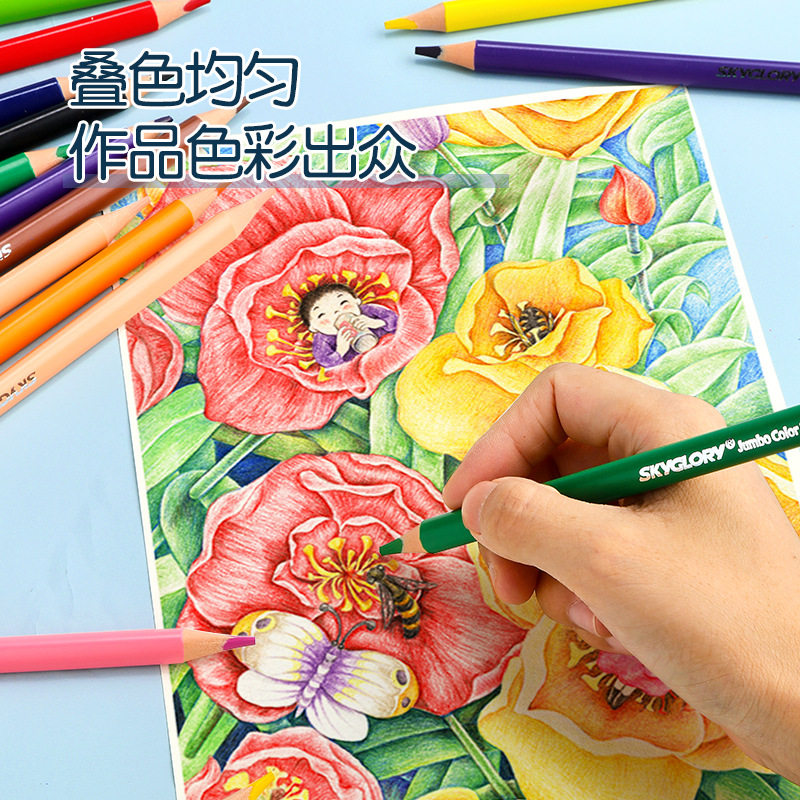 幼儿园加粗三角杆彩色铅笔批发小学生美术专用绘画笔文具油性彩铅