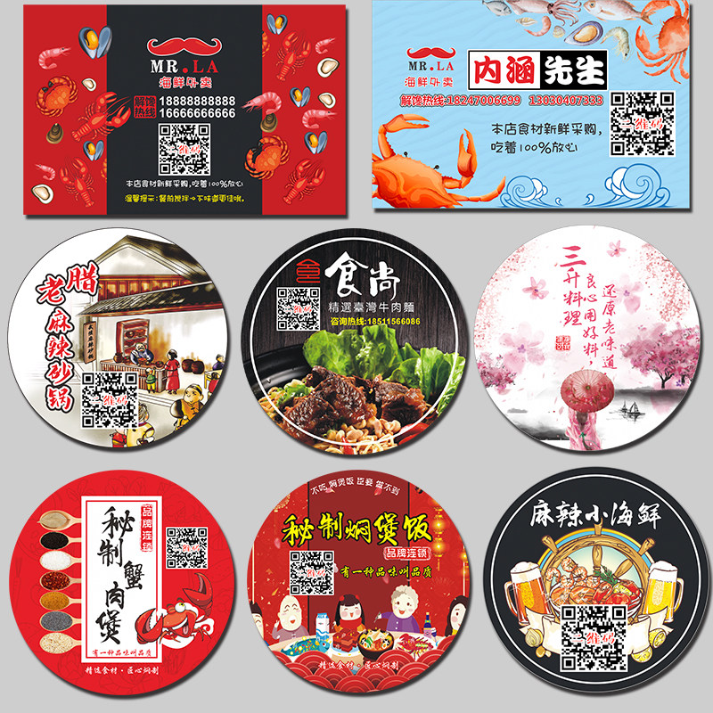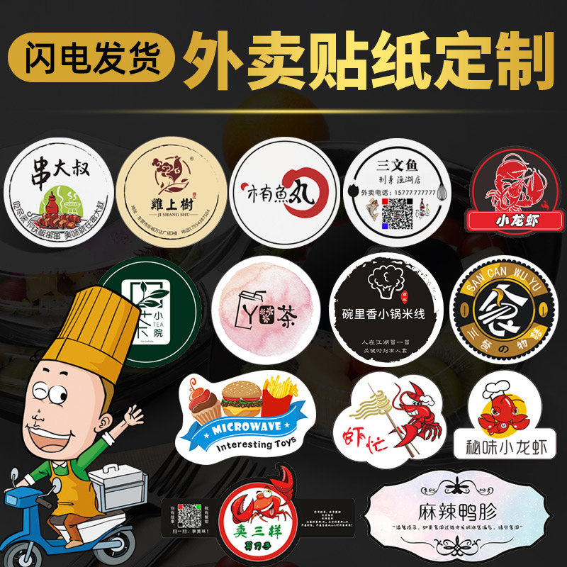 外卖标签贴纸定制螺蛳粉麻辣烫一次性餐盒贴纸订做商标自粘贴二维码印圆形不干胶店名logo餐饮打包餐盒封口贴